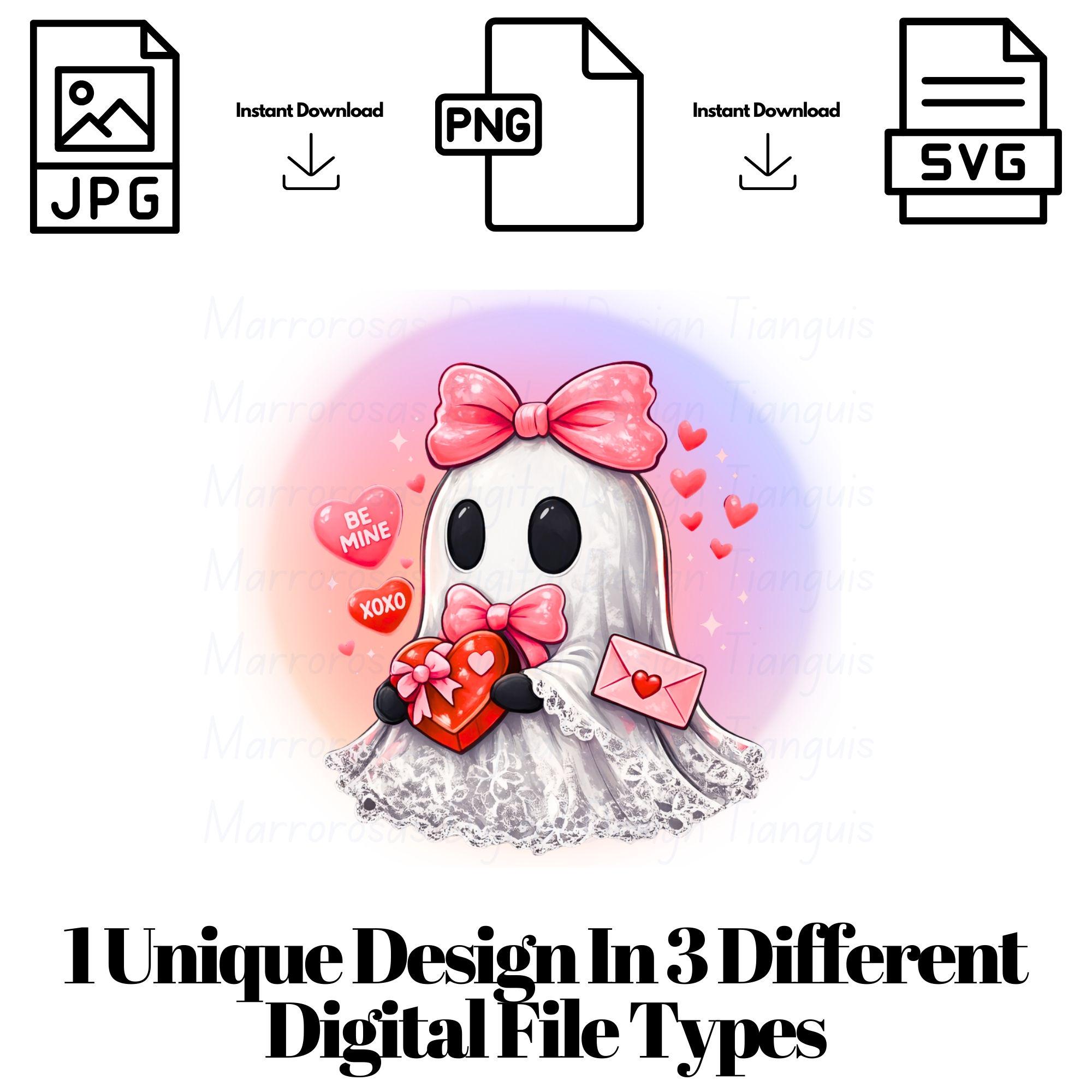 Add the perfect touch of spooky-cute romance to your creations with this adorable Valentine Boo ghost digital design! Featuring a sweet, lovable ghost with soft Valentine vibes, this design blends cozy cuteness with heartfelt charm, making it perfect for seasonal projects and year-round ghost lovers alike. Designed with a modern kawaii aesthetic, gentle expressions, and a warm, lovable personality, this ghost is ideal for anyone who prefers cute over creepy. Whether your customers are shopping for Valentine’s Day, Galentine’s gifts, or simply love adorable characters, this design connects instantly and emotionally. This artwork is versatile, trendy, and perfect for small business products, print-on-demand shops, and creative personal projects........ My Little Valentine Boo is a very cute and lovable digital design/art that can be used in many different ways. Great for gifting either him or her. This digital design product comes in 3 different DIGITAL file types (PNG, SVG, & JPG) and also 1 PDF File to accommodate any of your needs. Files are resizable and printable!