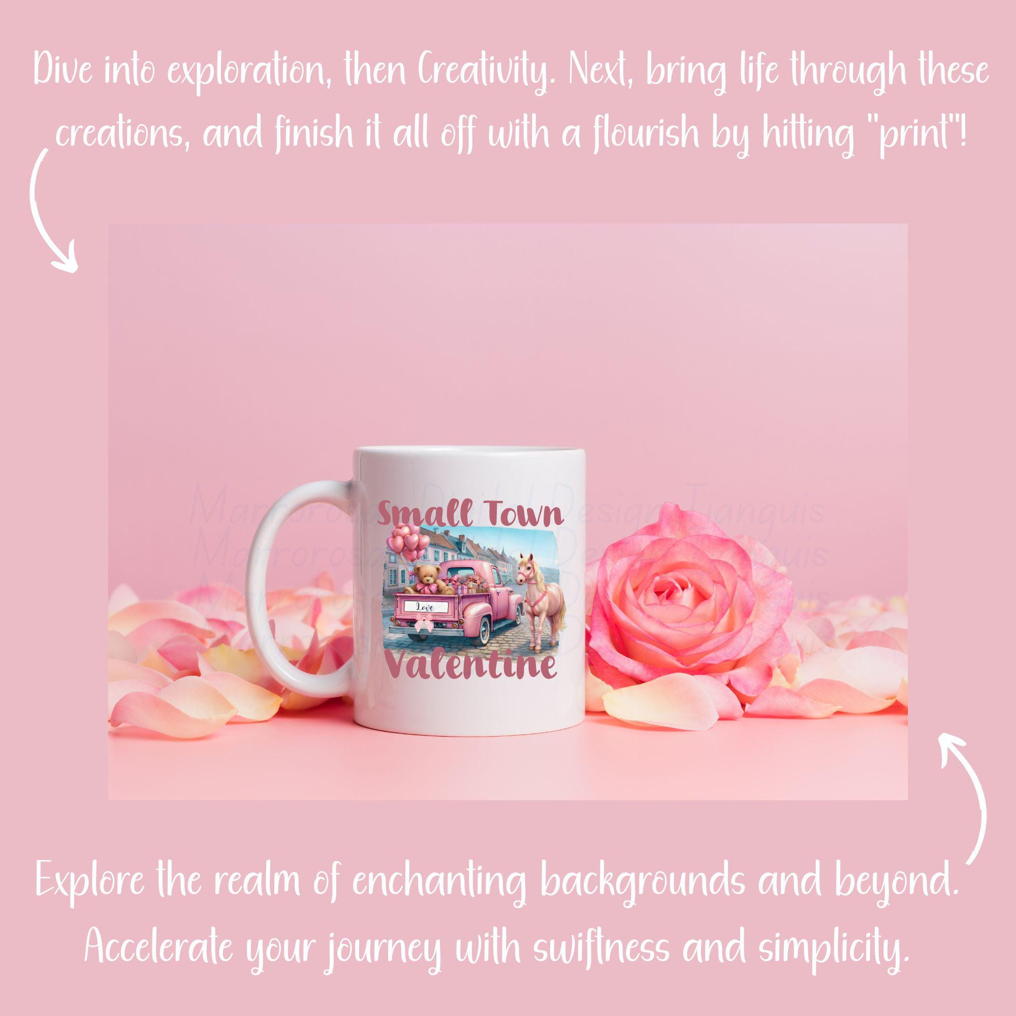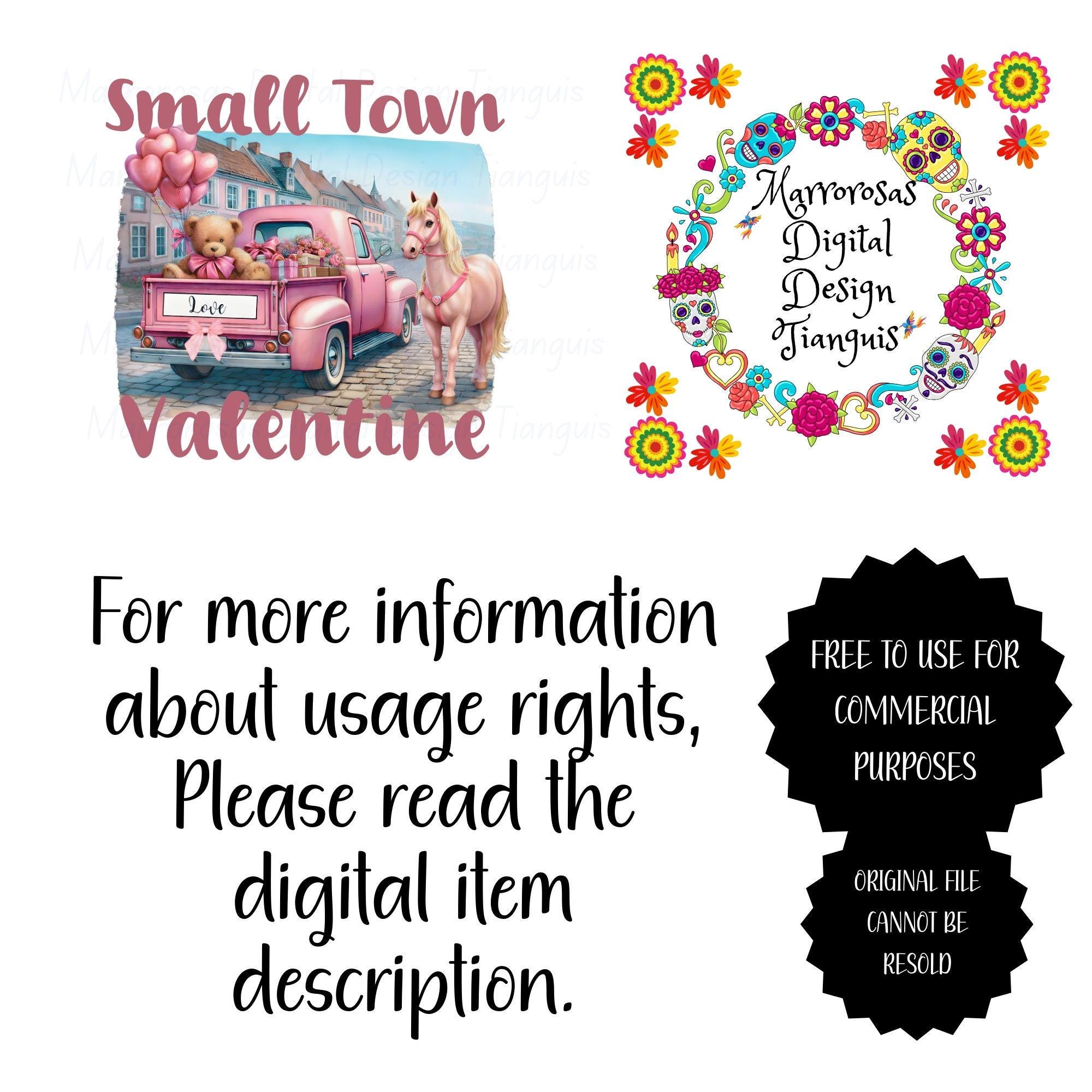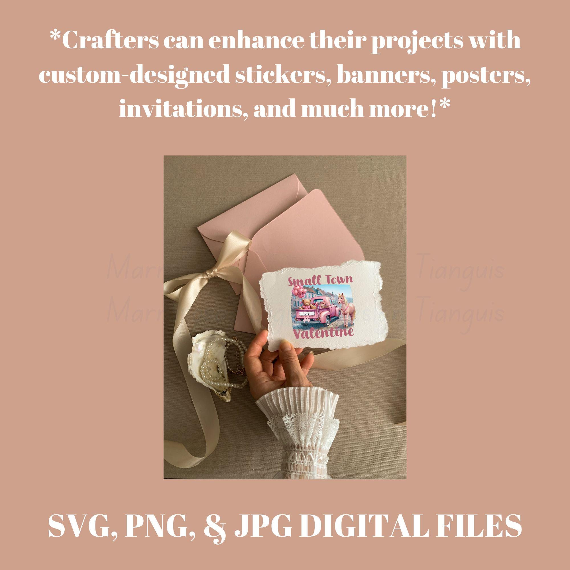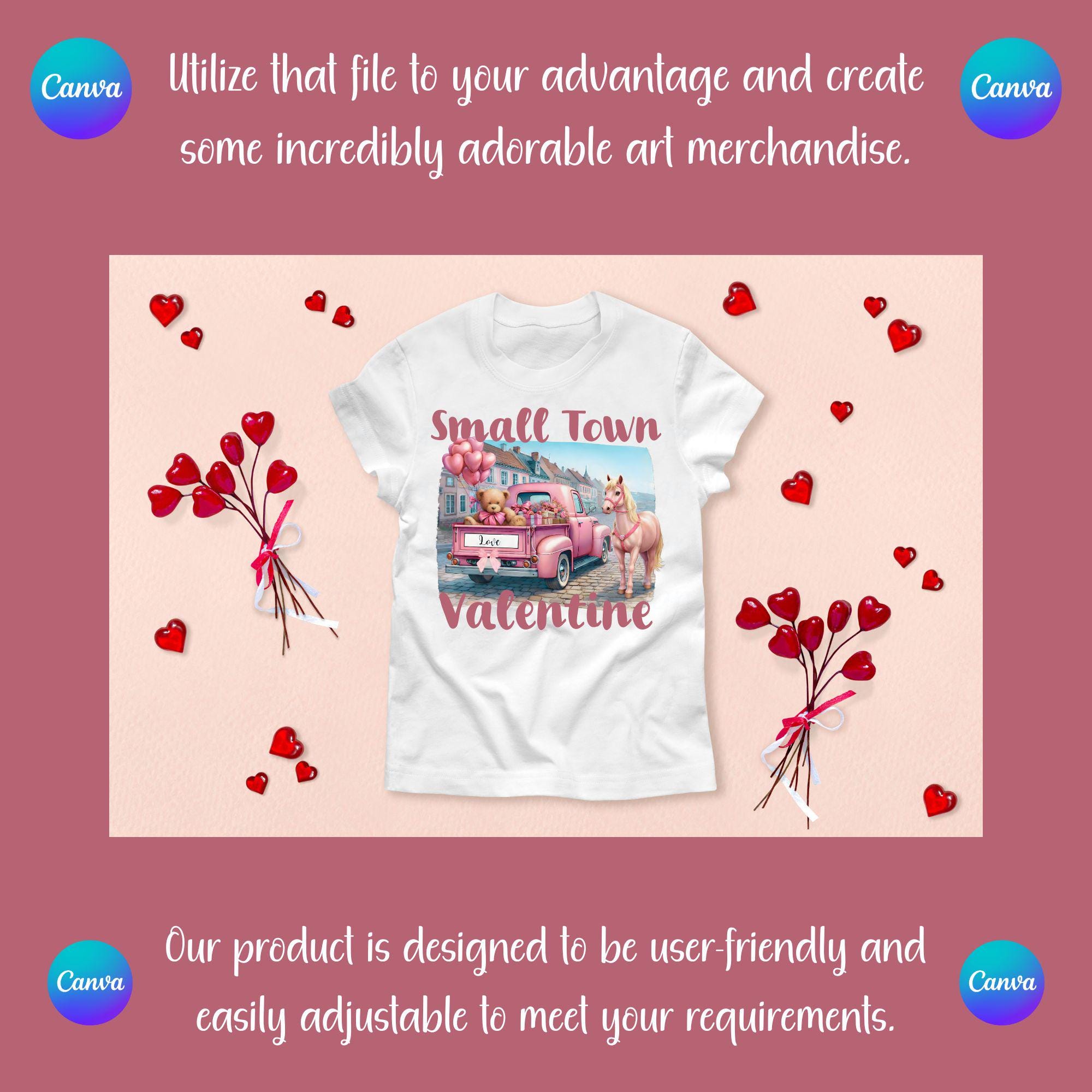 Bring soft country charm and sweet Valentine vibes to your projects with this adorable Small Town Valentine digital design. This whimsical artwork features a vintage pink pickup truck filled with heart-shaped balloons, a cuddly teddy bear holding love gifts, delicate florals, and a beautiful pink horse — all set against a clean white background with romantic pastel tones. This design blends rustic farmhouse style, Western charm, and Valentine sweetness, making it perfect for trendy apparel, gifts, and decor that shoppers love year after year. Whether you're creating t-shirts, sweatshirts, mugs, tumblers, stickers, cards, or wall art, this design is guaranteed to stand out with its soft aesthetic and boutique-ready appeal.... Small Town Valentine is a very cute and lovable digital design/art that can be used in many different ways. Great for gifting either him or her. This digital design product comes in 3 different DIGITAL file types (PNG, SVG, & JPG) and also 1 PDF File to accommodate any of your needs. Files are resizable and printable!