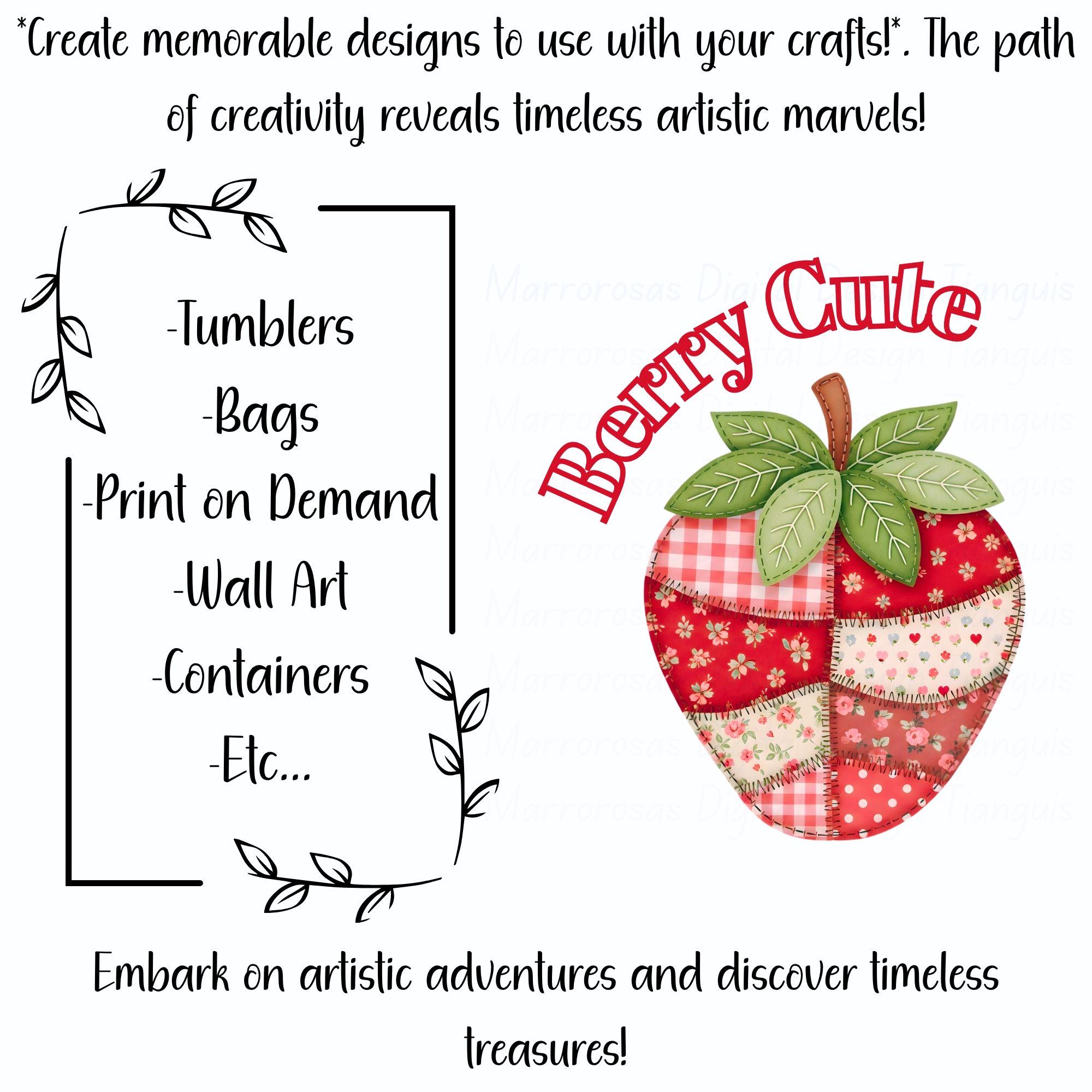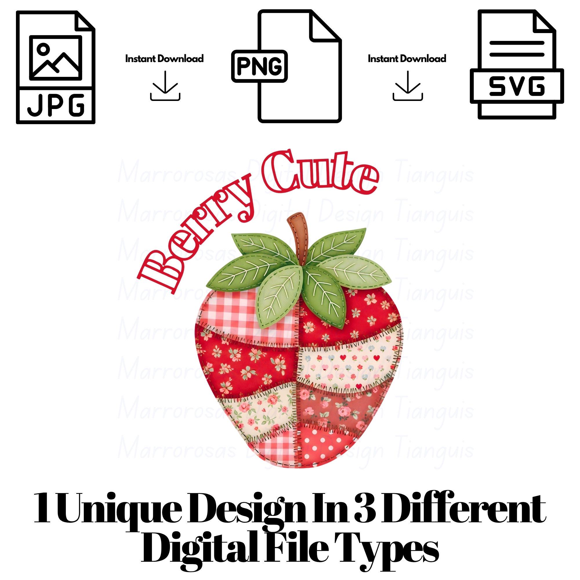 The soft layered green leaves with embroidered vein details and the stitched stem add depth and realism, making this design feel like a true fabric creation—without the work!...Faux Berry Cute is a very cute and lovable digital design/art that can be used in many different ways. Great for gifting either him or her. This digital design product comes in 3 different DIGITAL file types (PNG, SVG, & JPG) and also 1 PDF File to accommodate any of your needs. Files are resizable and printable!