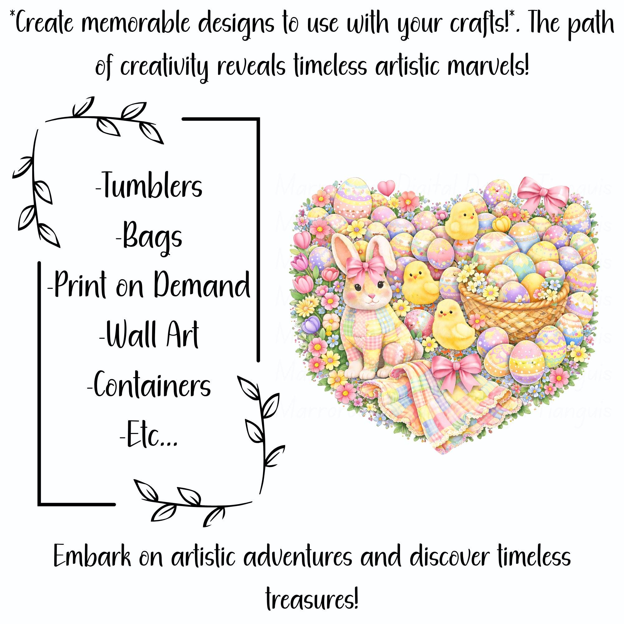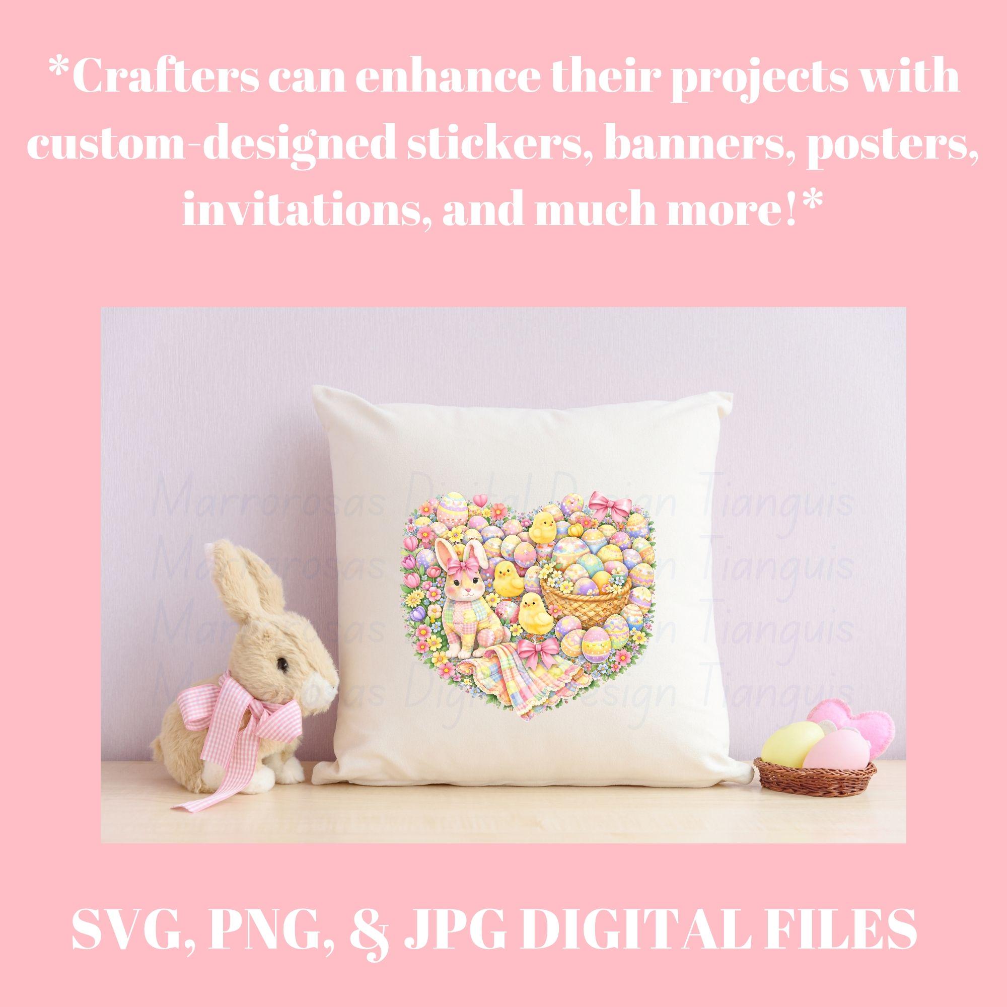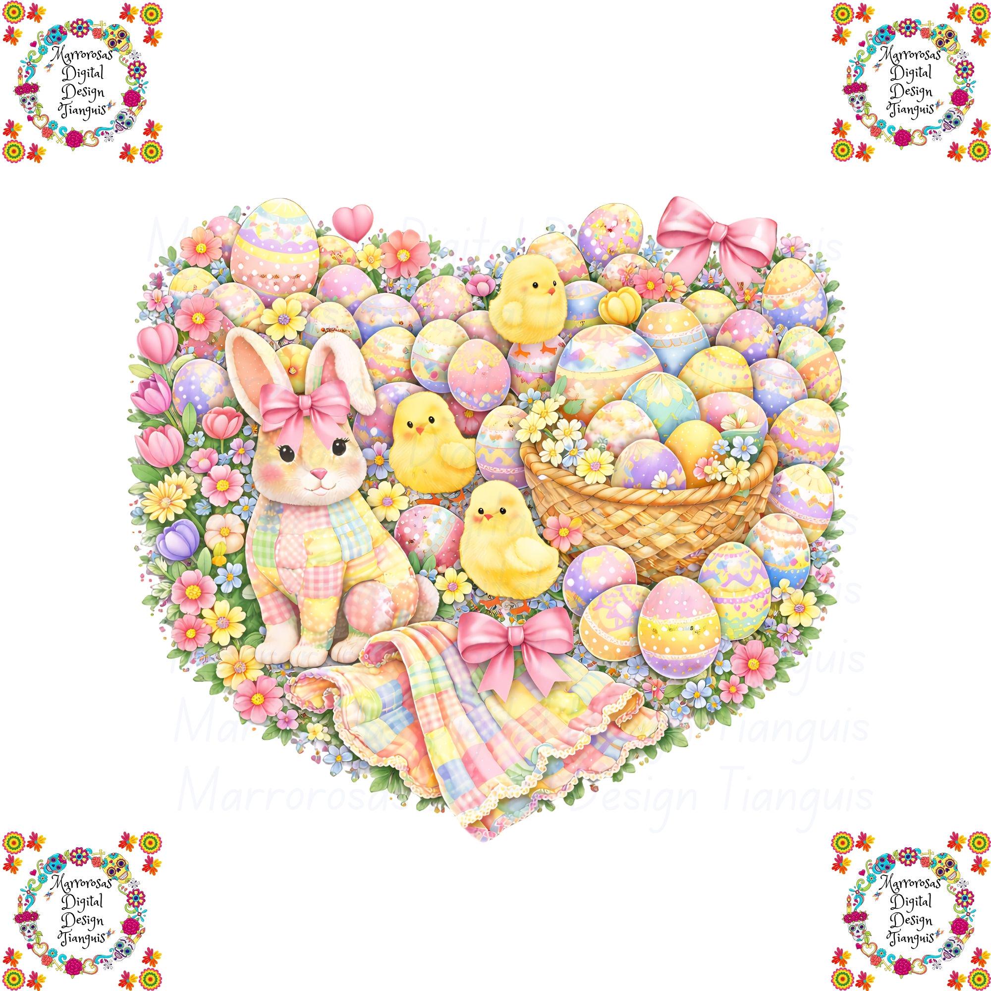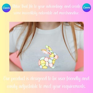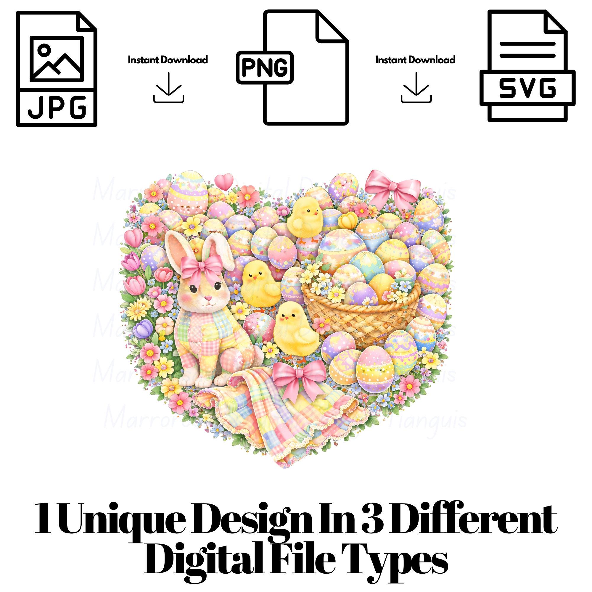 This sweet and whimsical artwork features a charming pastel bunny with a soft quilt-inspired look, surrounded by fluffy chicks, beautifully decorated Easter eggs, and cozy spring elements. Designed in a gentle, storybook-style aesthetic, this piece captures the magic of Easter in a way that’s perfect for children, babies, and families. With its soft pastel color palette, playful details, and heartwarming feel, this design is ideal for creating cute, memorable Easter products your customers will absolutely love 💖... Eggstra cute is a very cute and lovable digital design/art that can be used in many different ways. Great for gifting either him or her. This digital design product comes in 3 different DIGITAL file types (PNG, SVG, & JPG) and also 1 PDF File to accommodate any of your needs. Files are resizable and printable!